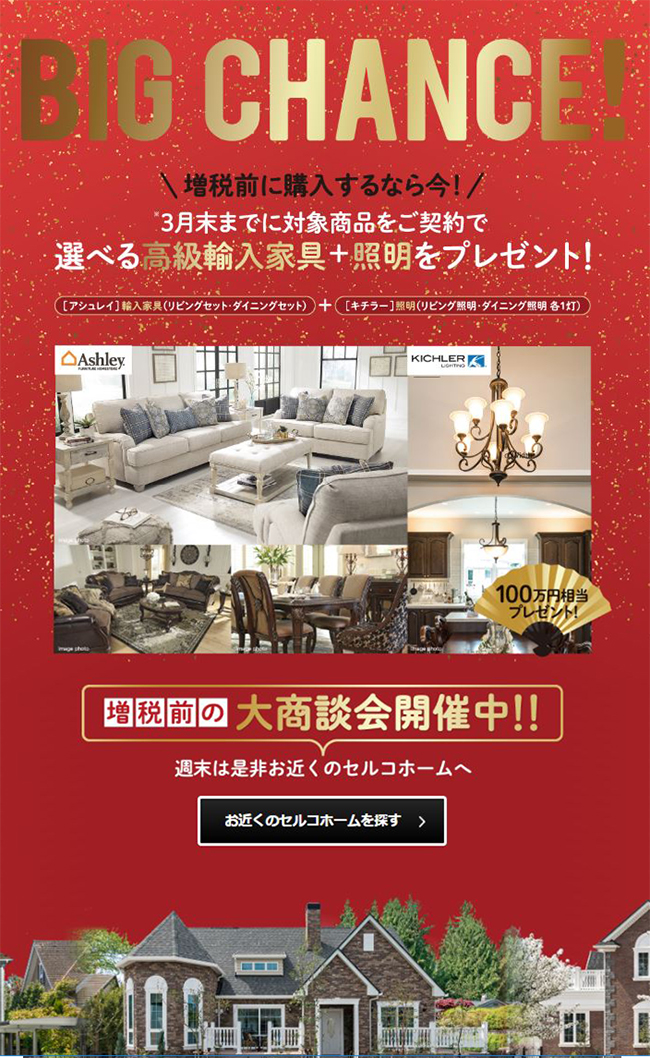 セルコホームでは(^o^)/『BIG CHANCE』キャンペーン開催中です![]()